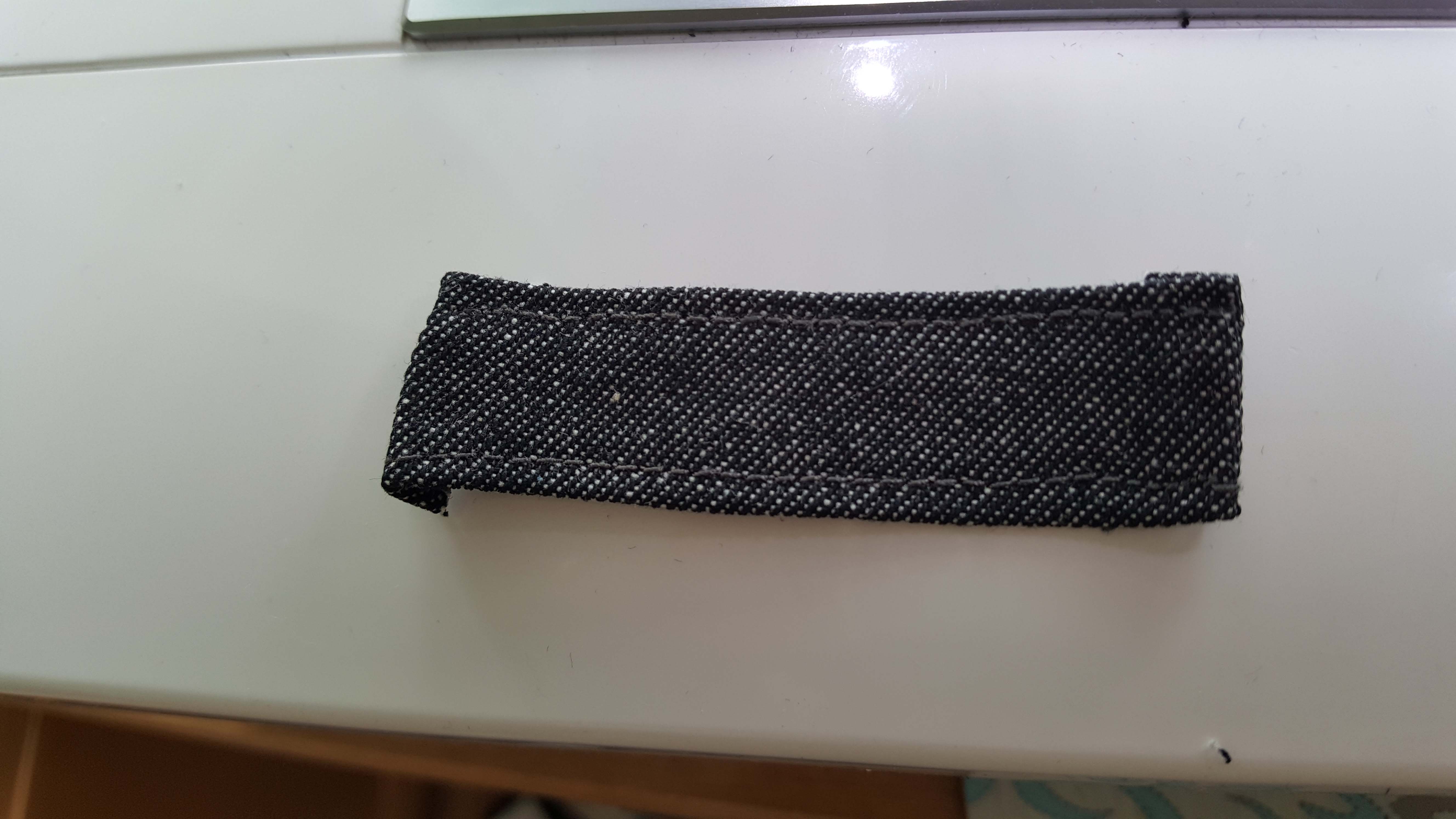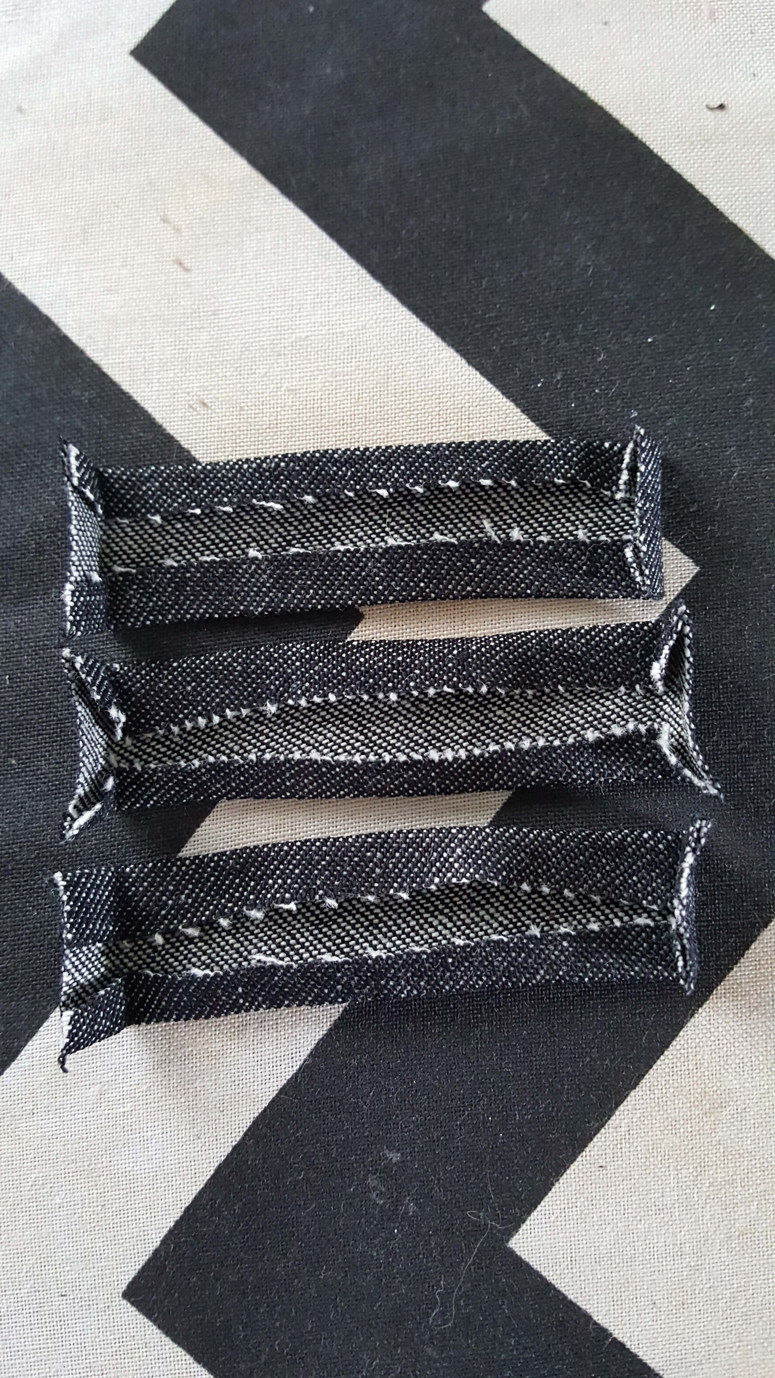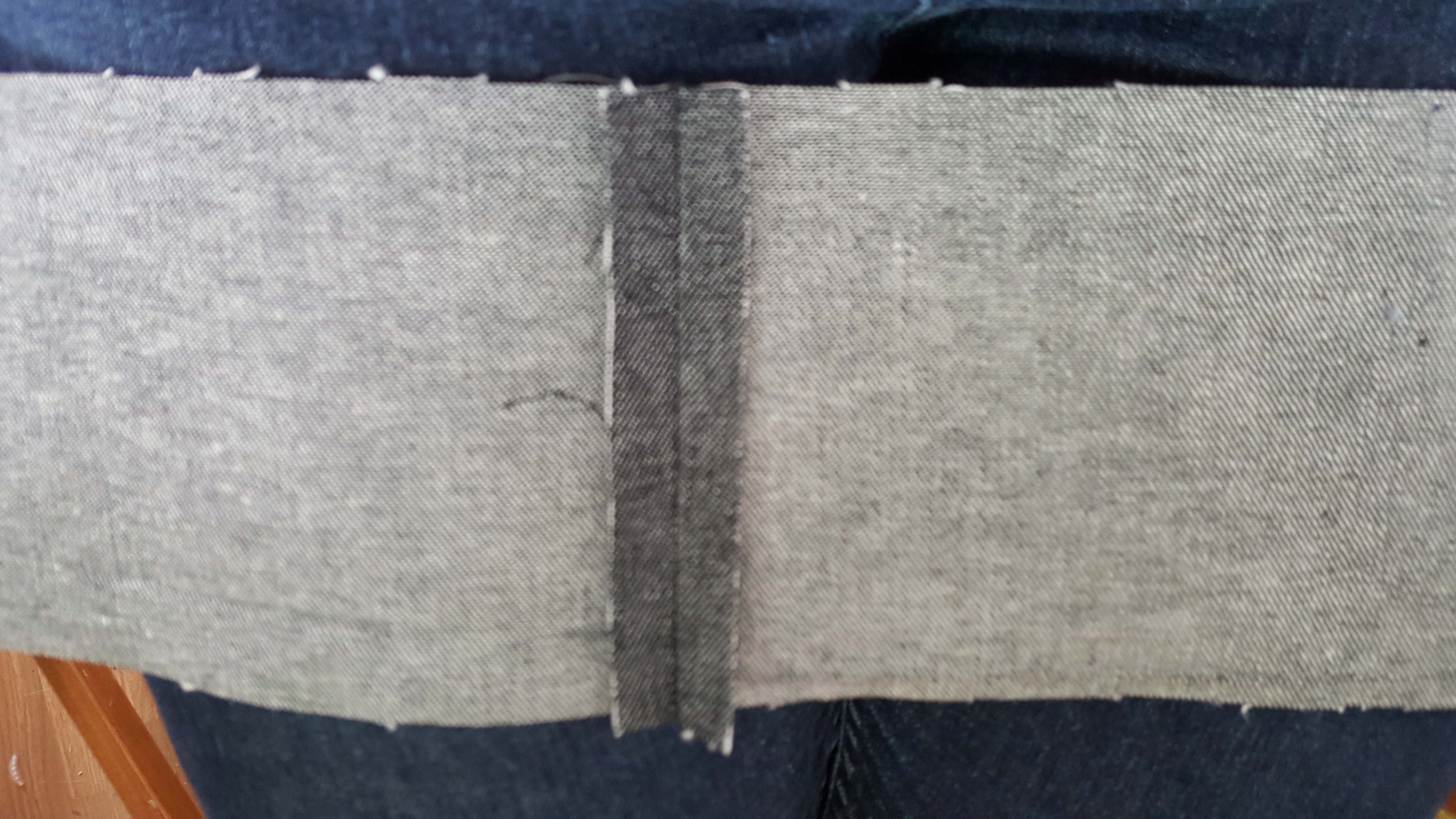 For the Belt Loops you should 3 strips of fabric, carefully press down the edges and top stitch in place.