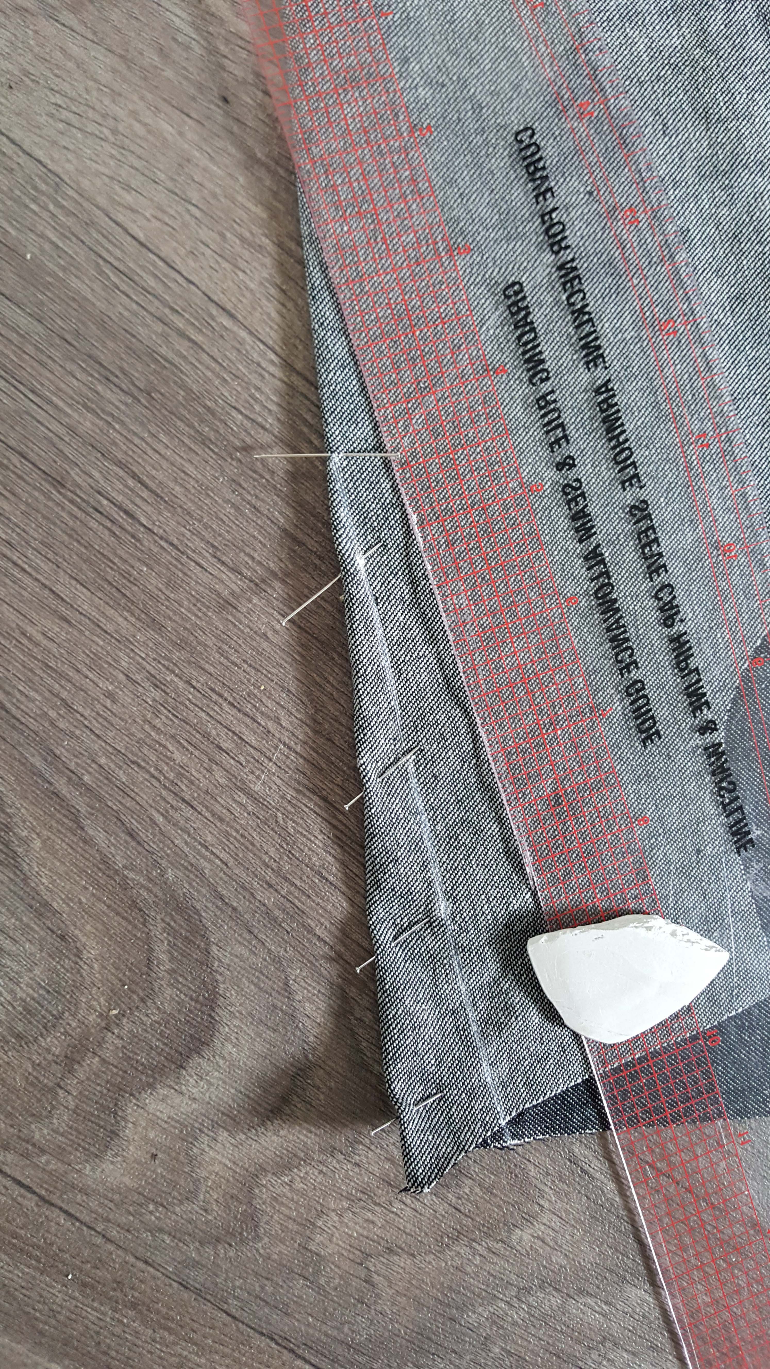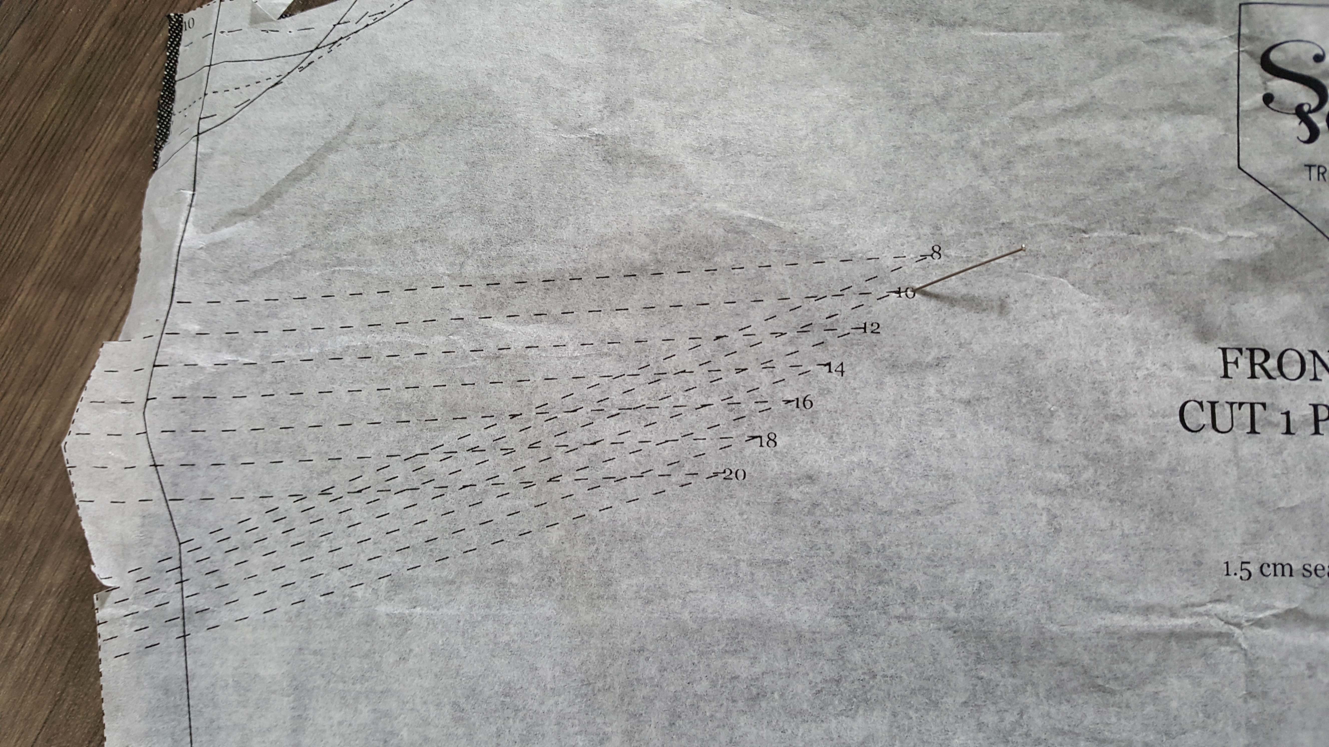 A handy tip for the Darts is that I put a pin through the paper and Fabric then gently pull away the paper to leave the pin in the fabric then match up the lines to the bottom of the dart where i had made a notch with Tailors Chalk for ease of sewing.