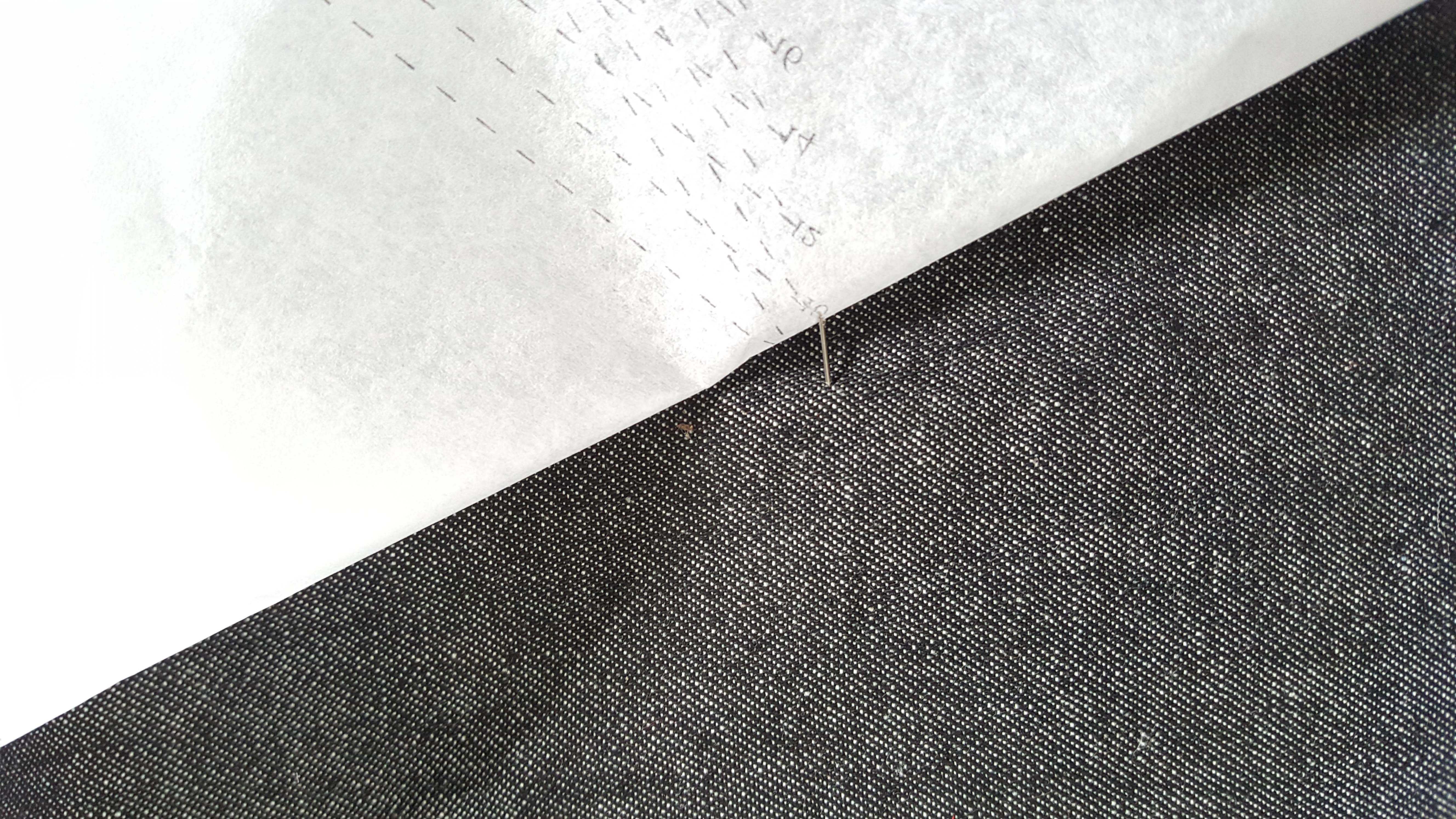 Now then, you can go ahead and cut straight into the paper pattern to the size you require and to make sure you add any nothces/markings onto the fabric then cut out the pieces 🙂