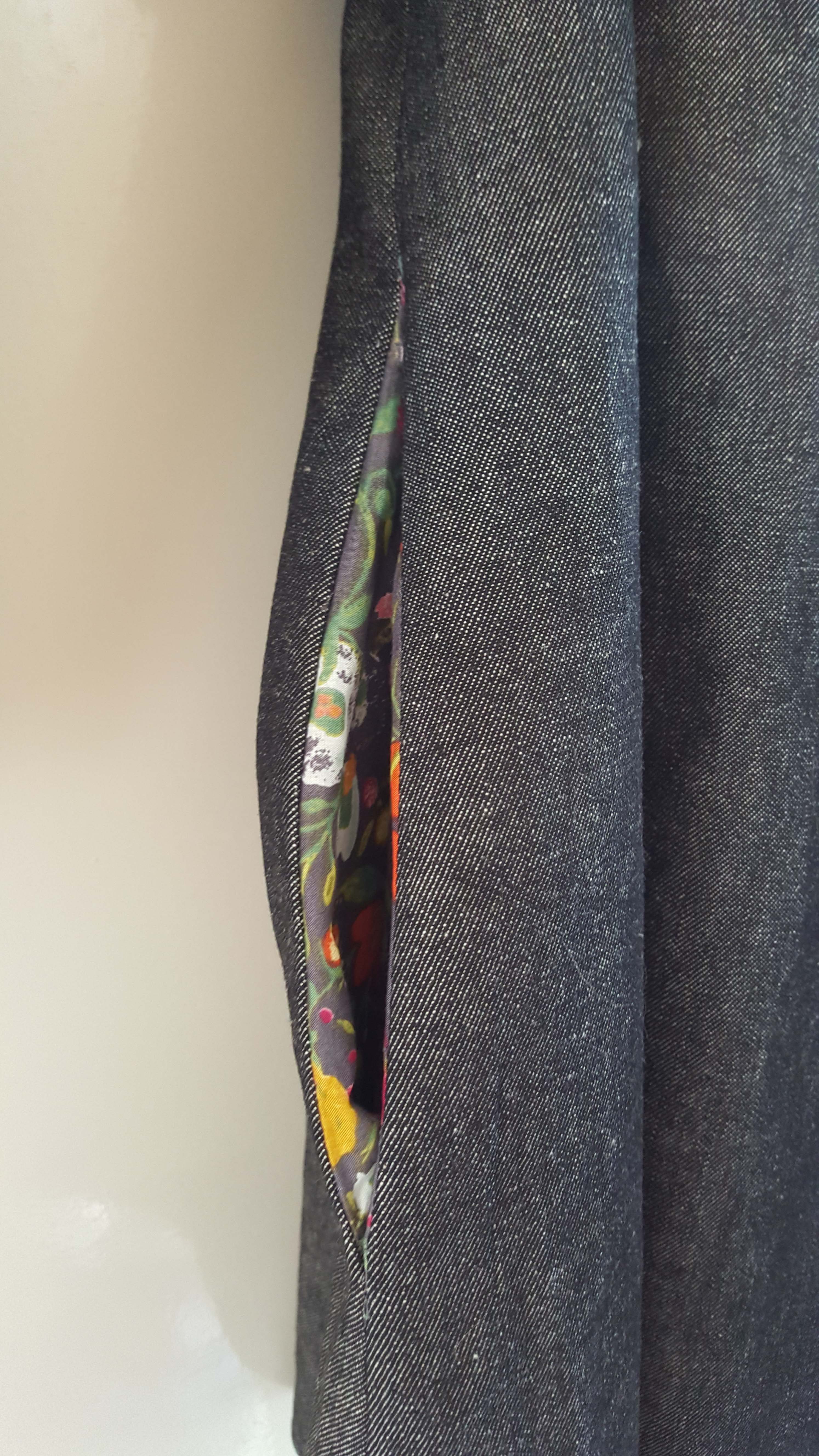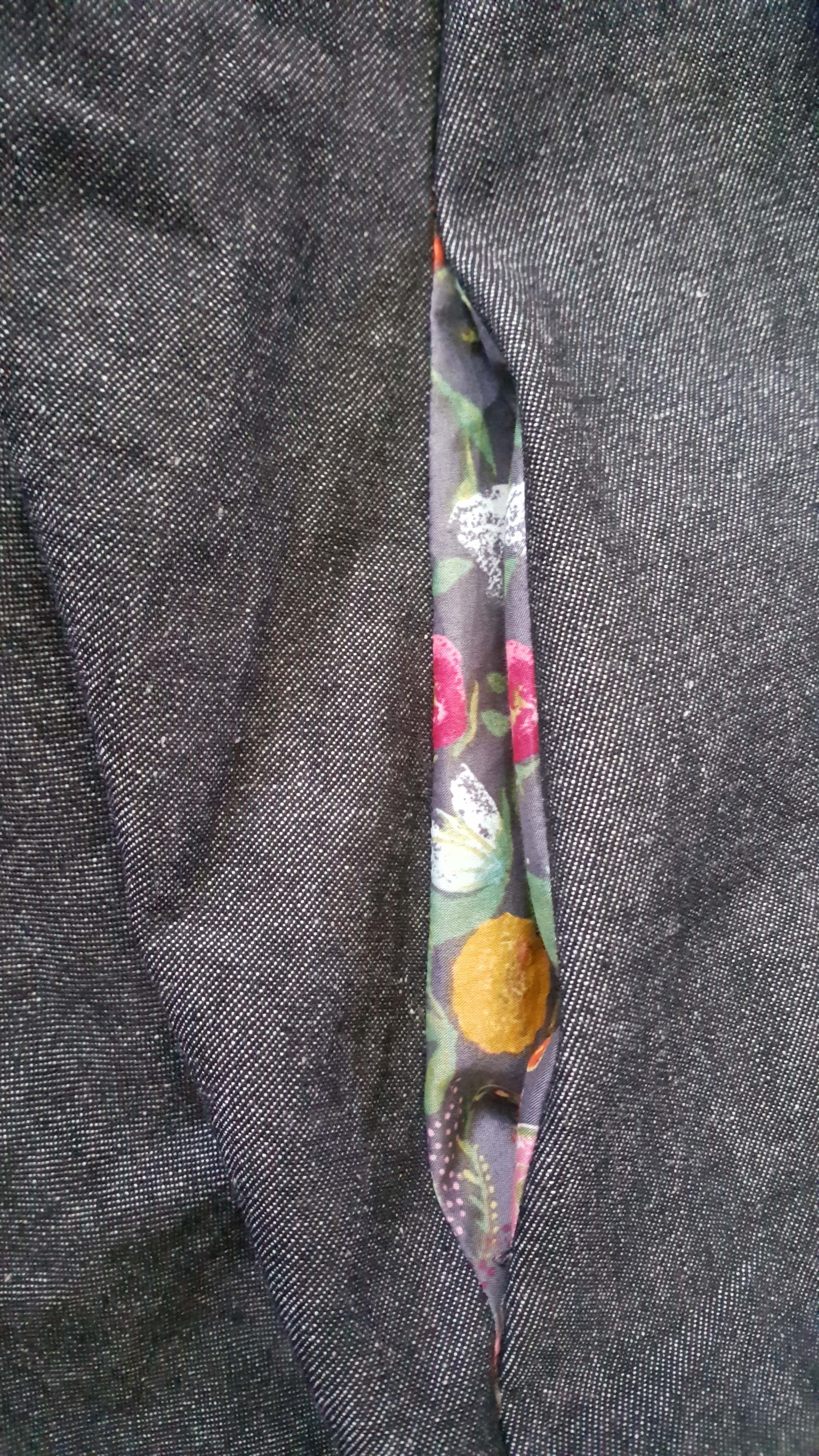 A big Thank you to Whiteree Fabrics for supplying me with the ever so gorgeous Black 100% Cotton Denim and i had some left over Art Gallery Emmy Grace Budquette Nightfall 100% Cotton Voile from My Peter Pan Collar Blouse its really beautiful and soft to touch perfect for giving your hands a bit luxury whilst in pockets!