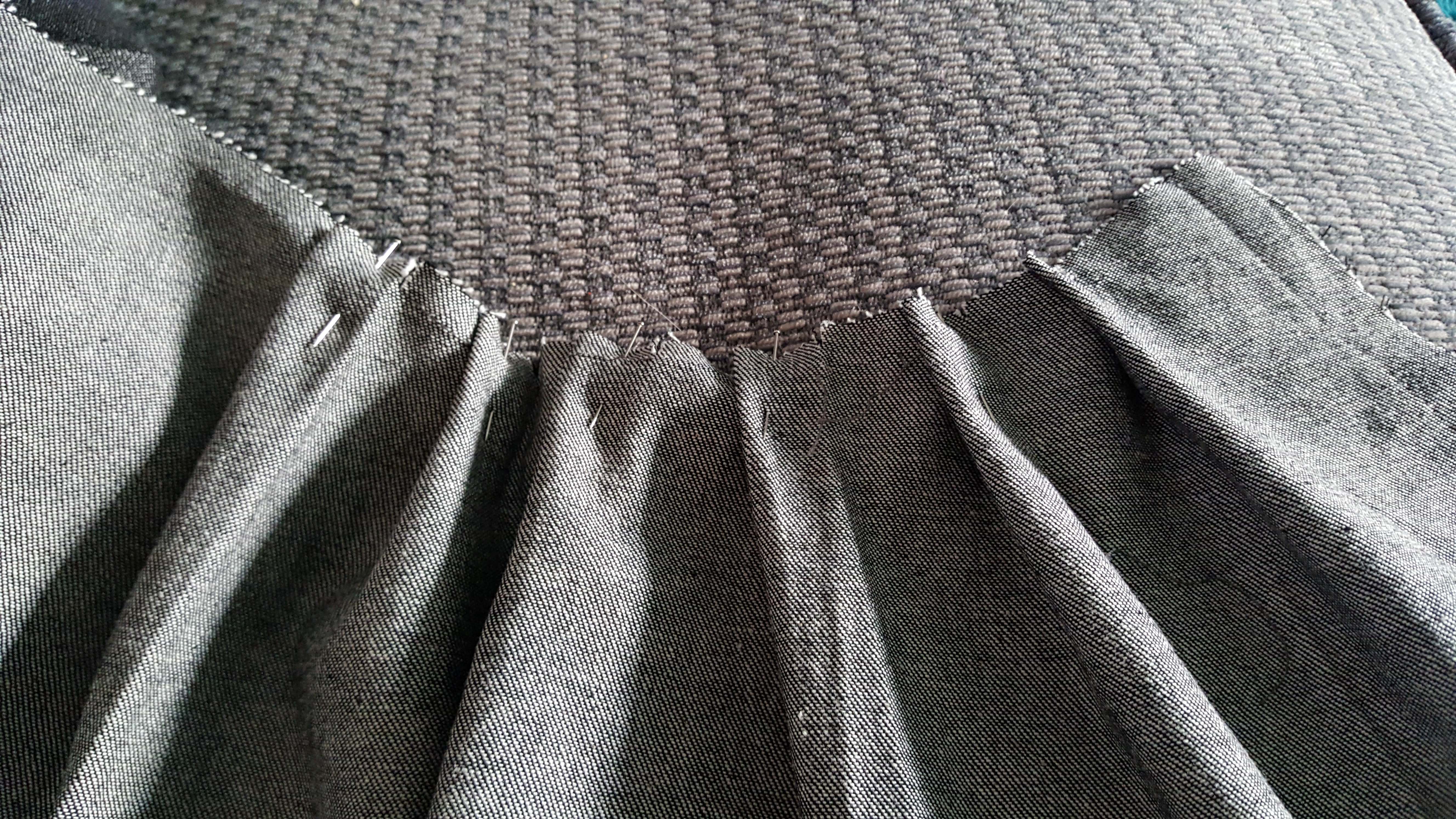 Now to make the Gather for the top sleeve to fit the armhole. I used a longer stitch (basically a tack stitch) at the points where marked on the pattern piece and make sure you don’t back stitch at either end and to leave enough thread to pull it gently to make it gather.