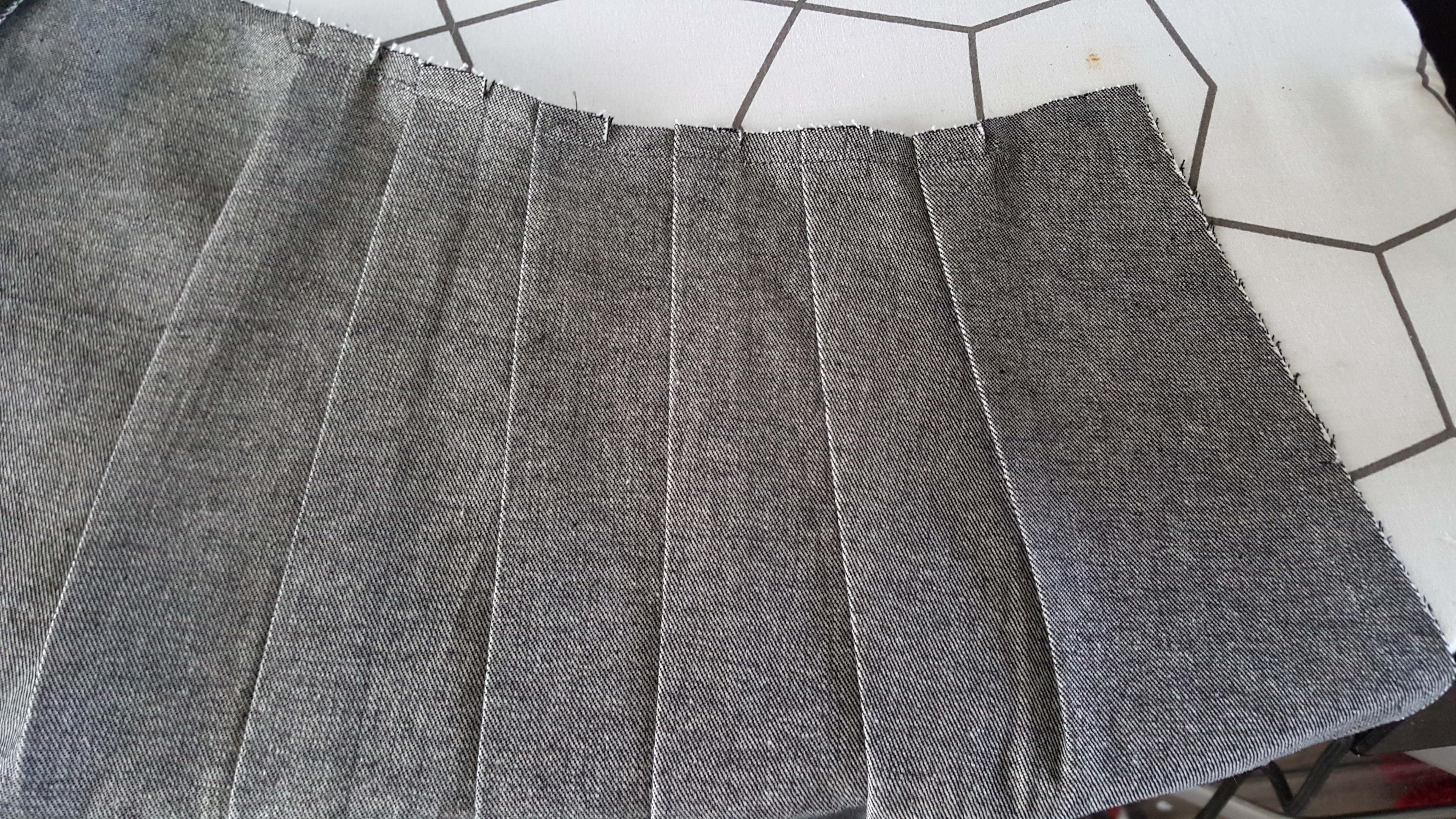 Now i set my Sewing Machine to a longer stitch to tack the pleats in till i sew the Skirt and Bodice together where I’ll take the them out after the Press the Pleats.
