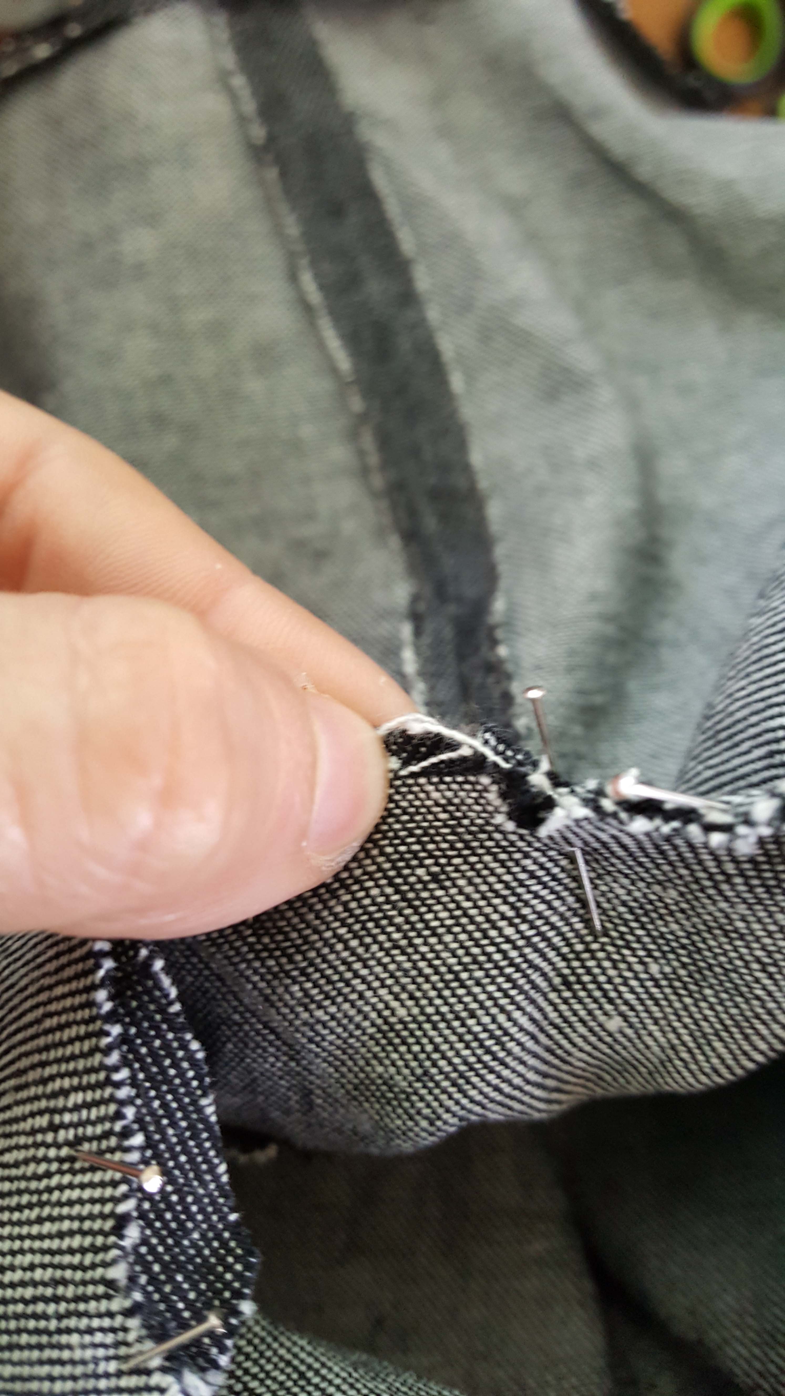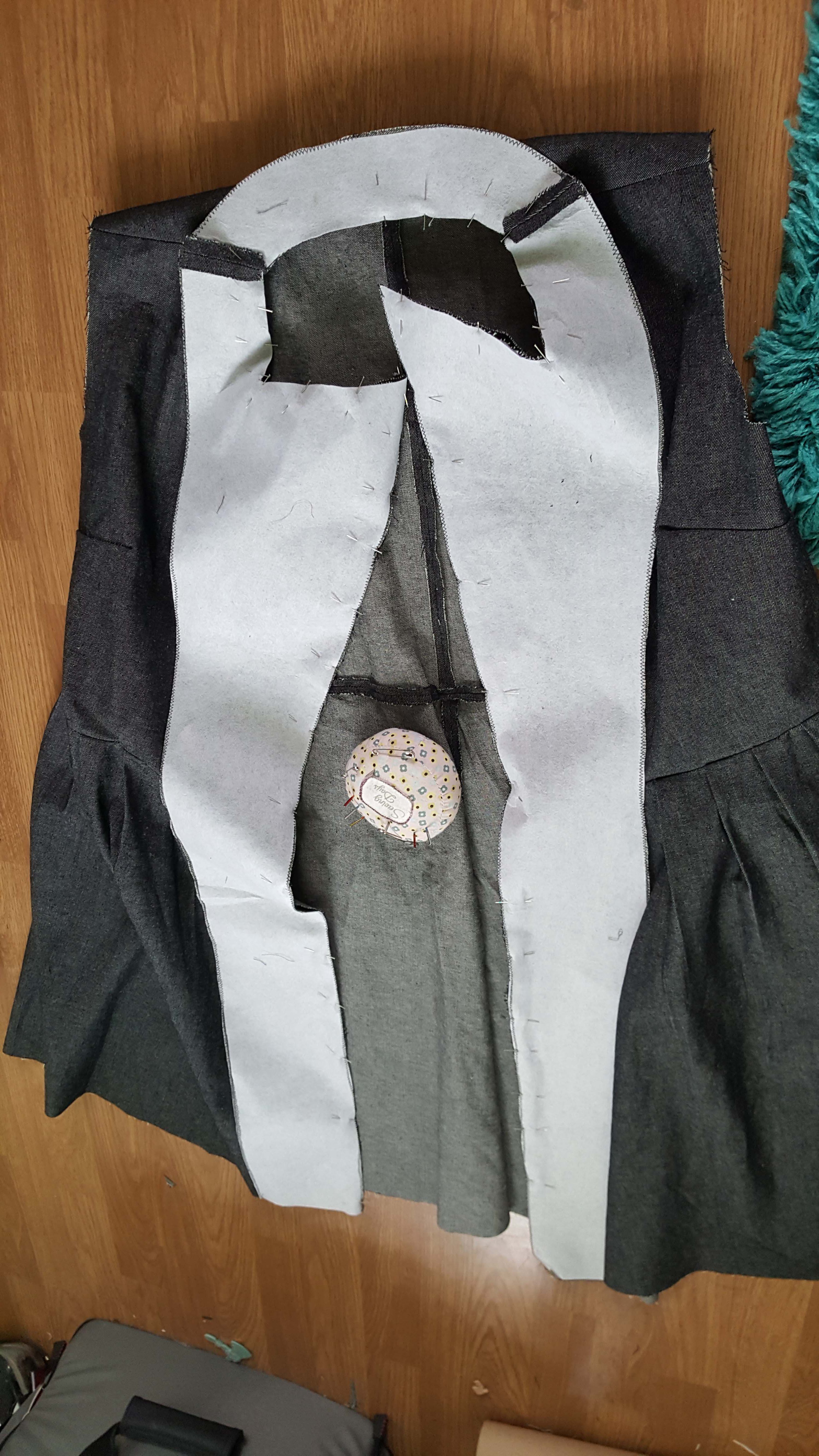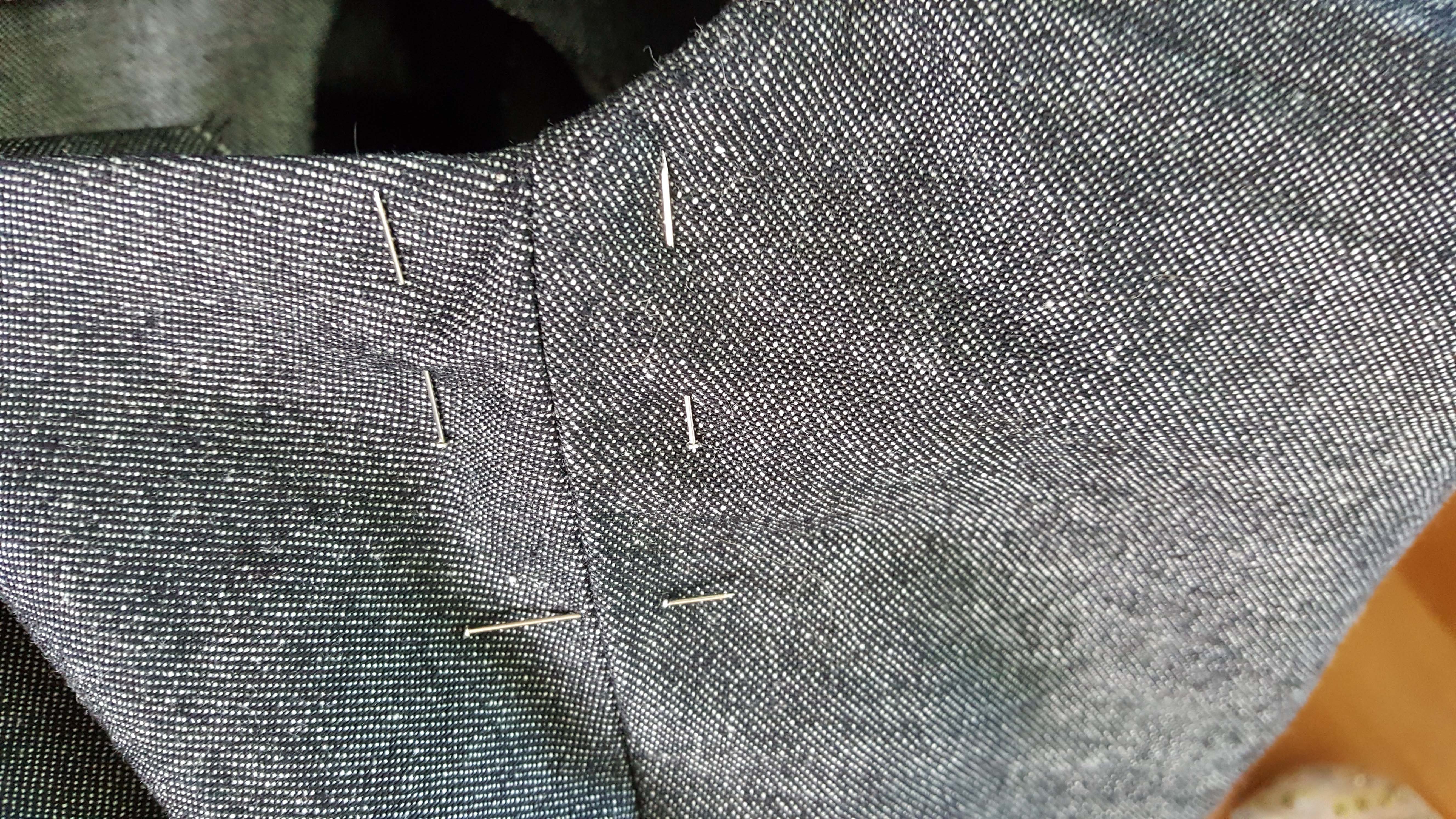 Now to keep them pesky Facings in place, I’d Stitch the Ditch! Basically I pinned the Facing to the Coat itself and then stitched in the Seam so the stitches can’t been seen and it gives the Facings a better appearance too 🙂 I put a pin at the end of the facing so i know where to finish my Stitching in the Ditch!