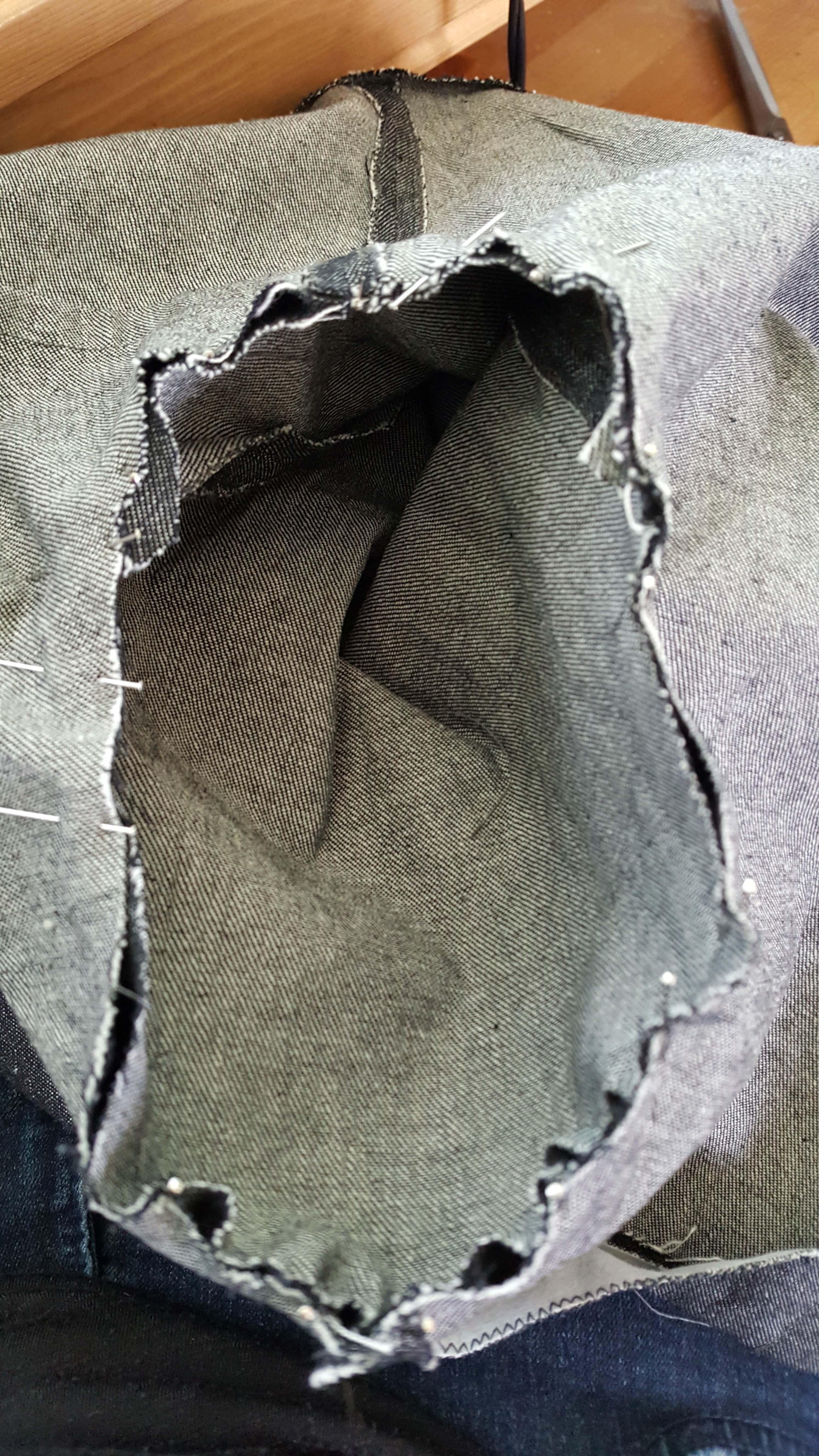 Fit the Sleeve Head into the Armhole with Right Sides Together so that your Sleeve is inside the Coat itself. Pin in place and Sew. Then take out the Tack stitches with the trusty Seam Ripper and finish the Seams and Press.