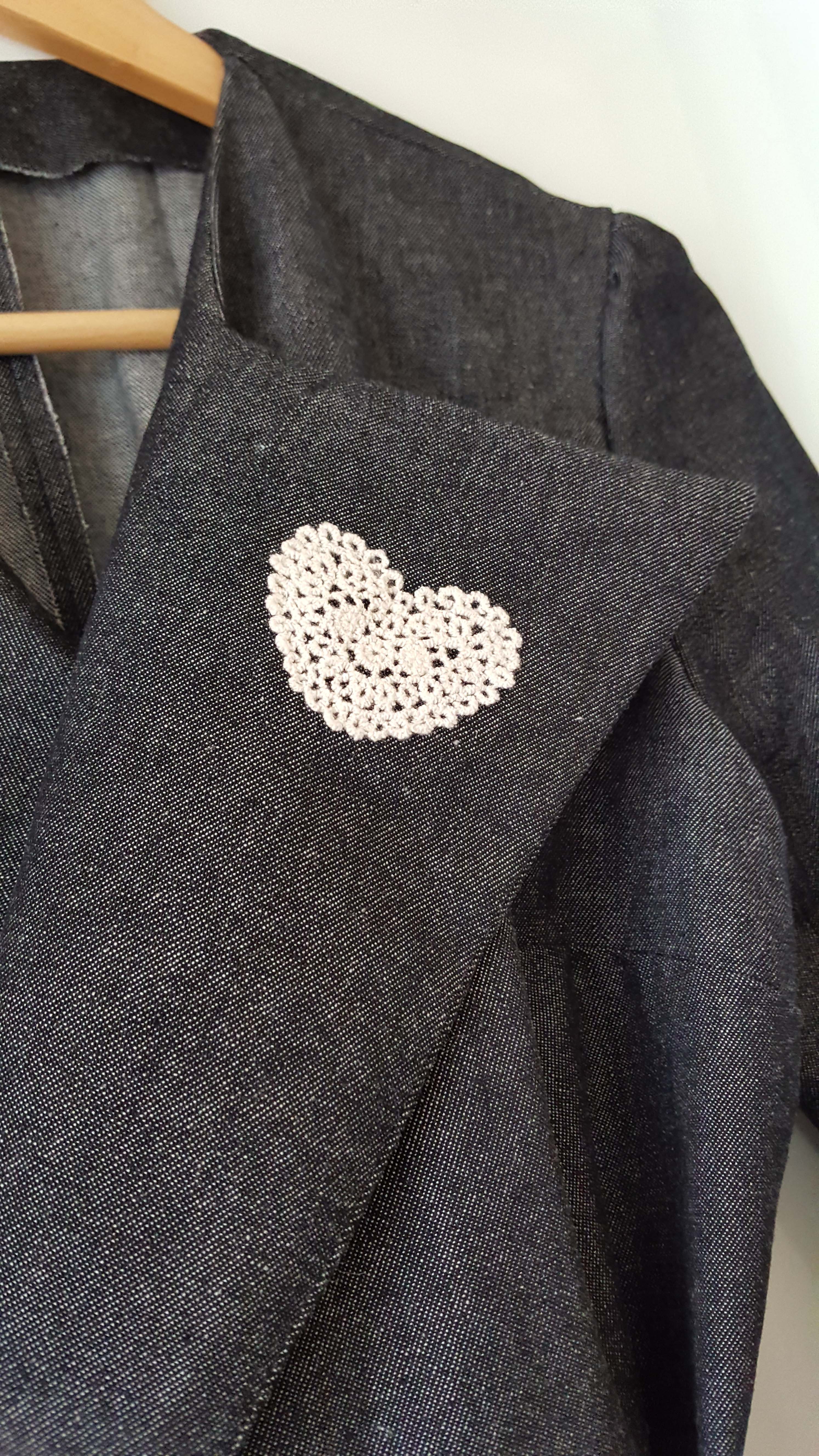 Of course I couldn’t help myself to add a little bit of embellishment on the Coat Collar by adding a Cream Crochet Heart from my stash.