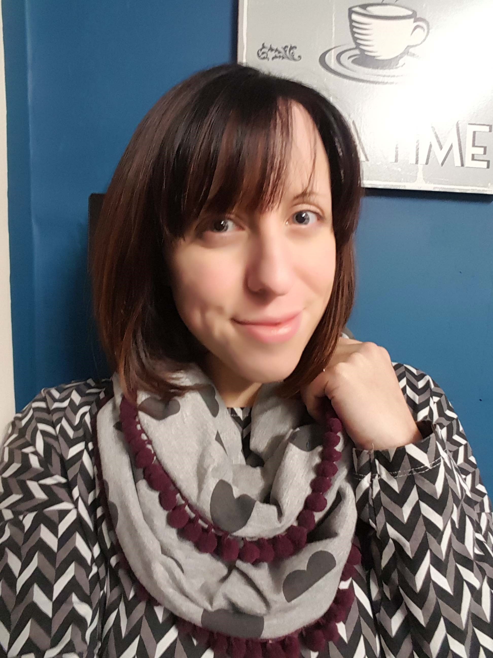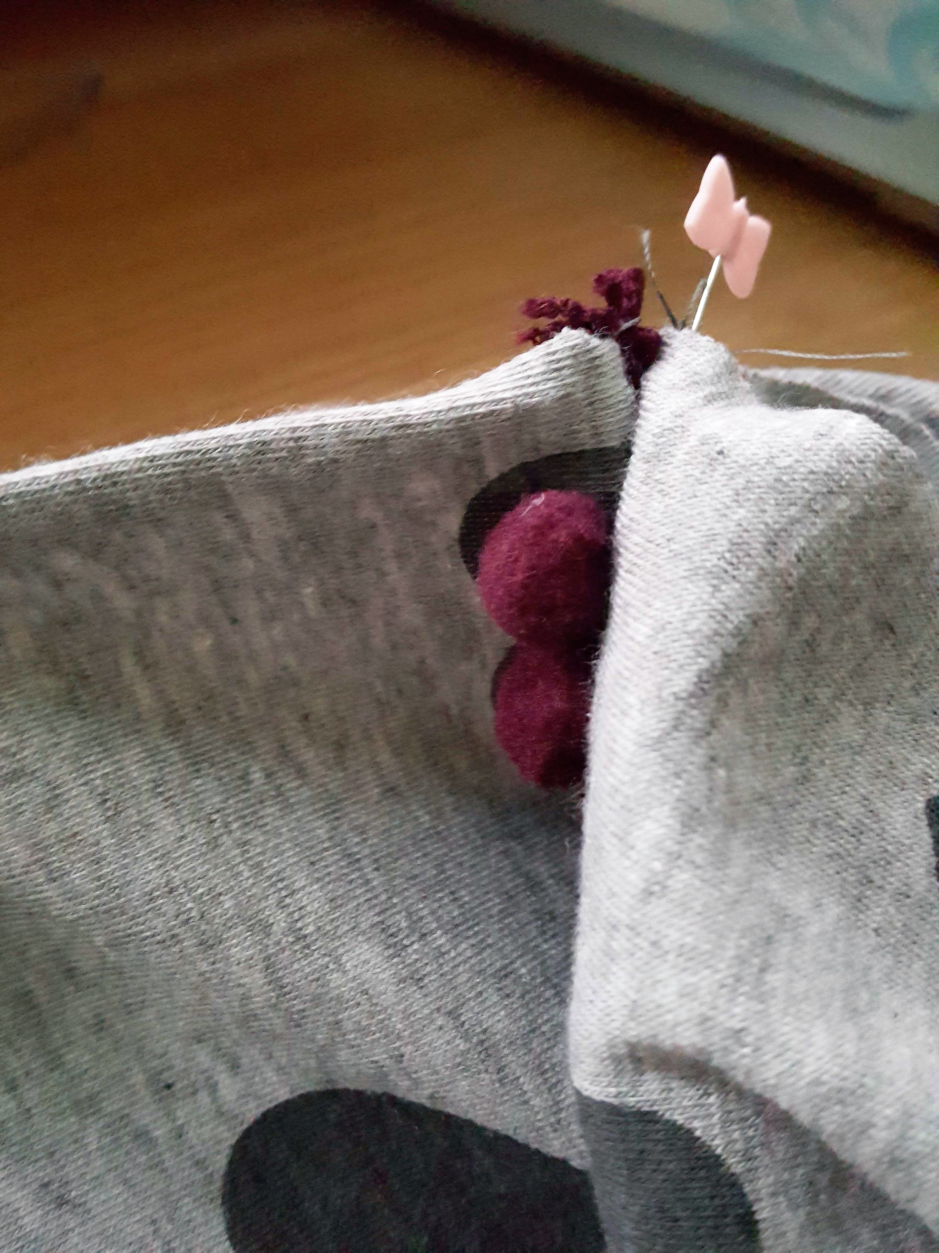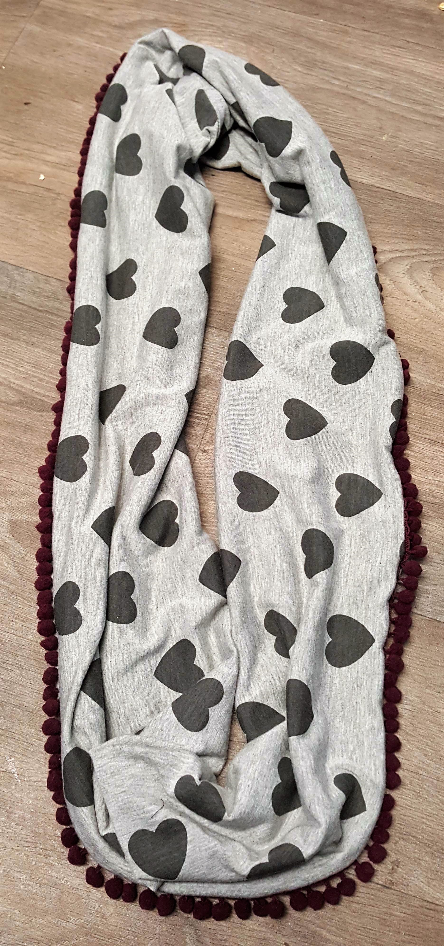 So to cheer myself up I made myself a new Jersey Infinity Scarf with added Pom Poms to make it Cheery!