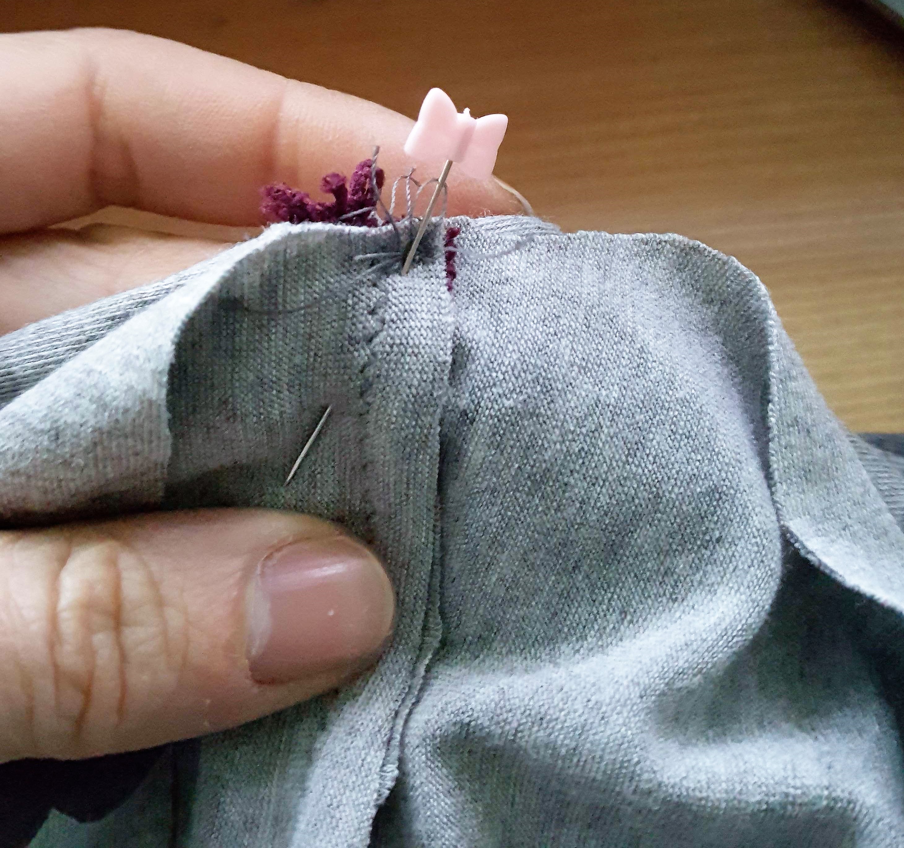 Take both of the open ends of the Fabric and start pinning where the Seams meet and try and pin about 3 quarters of the way round. Sew in place using 1cm Seam Allowance.