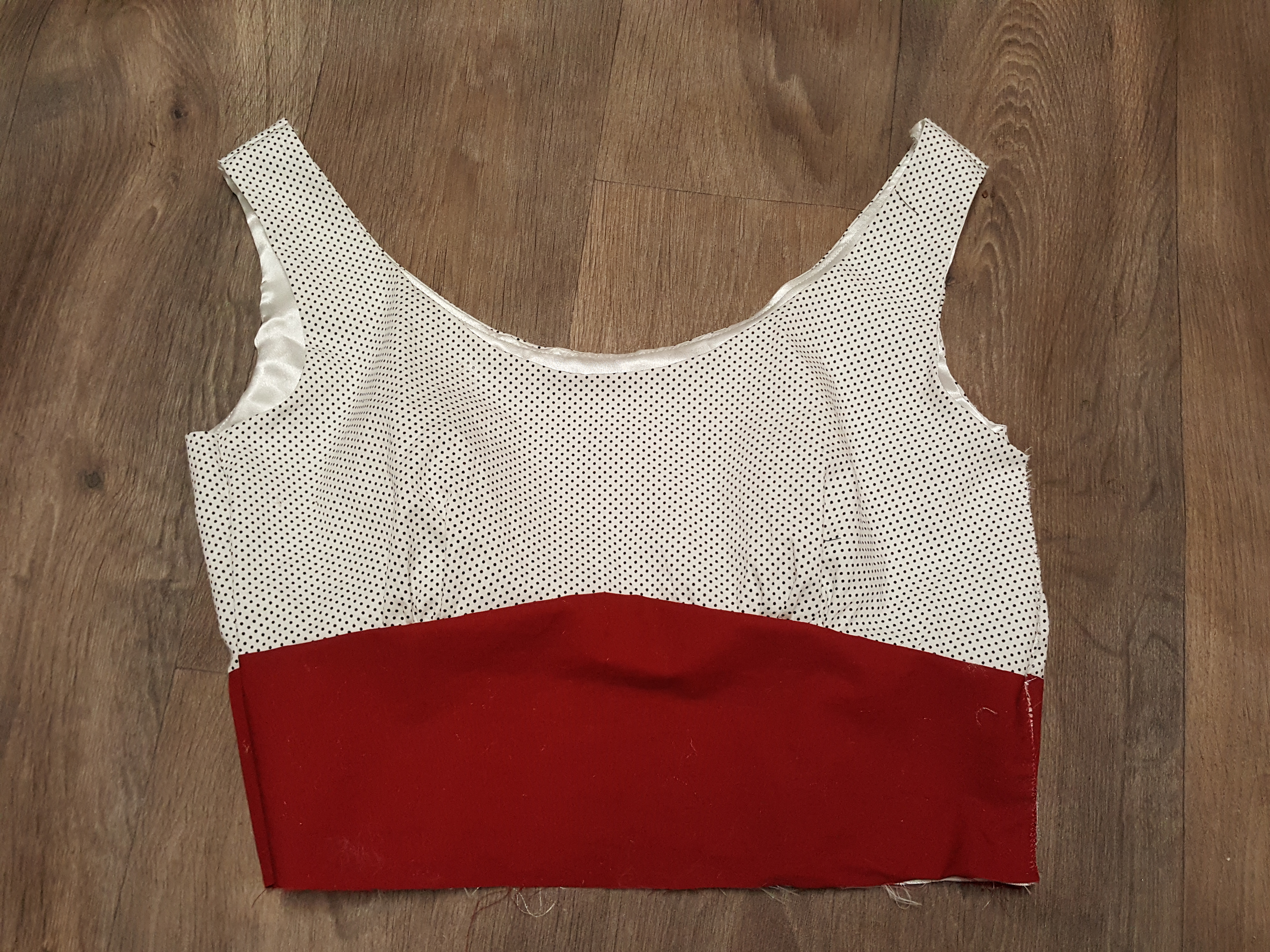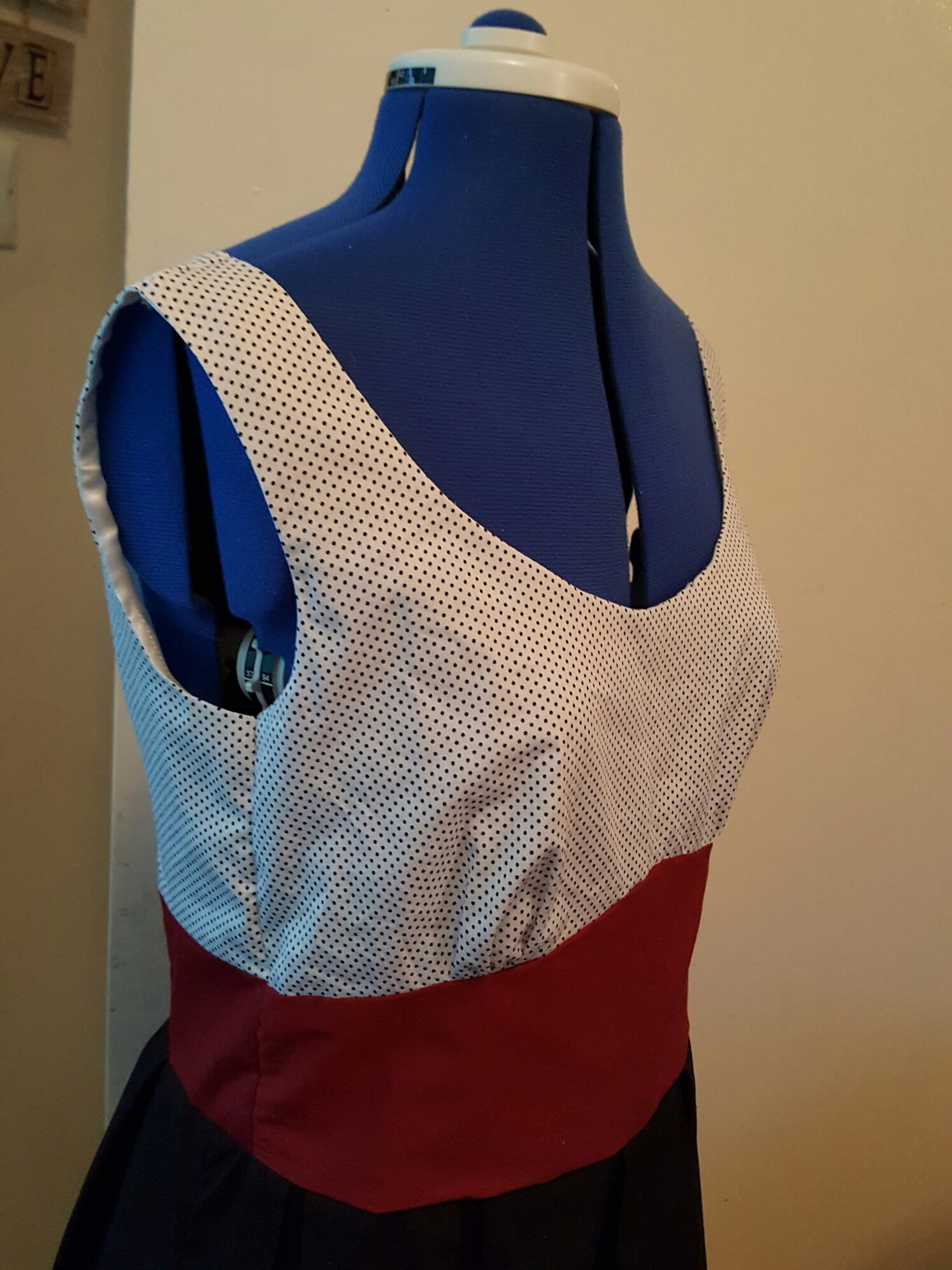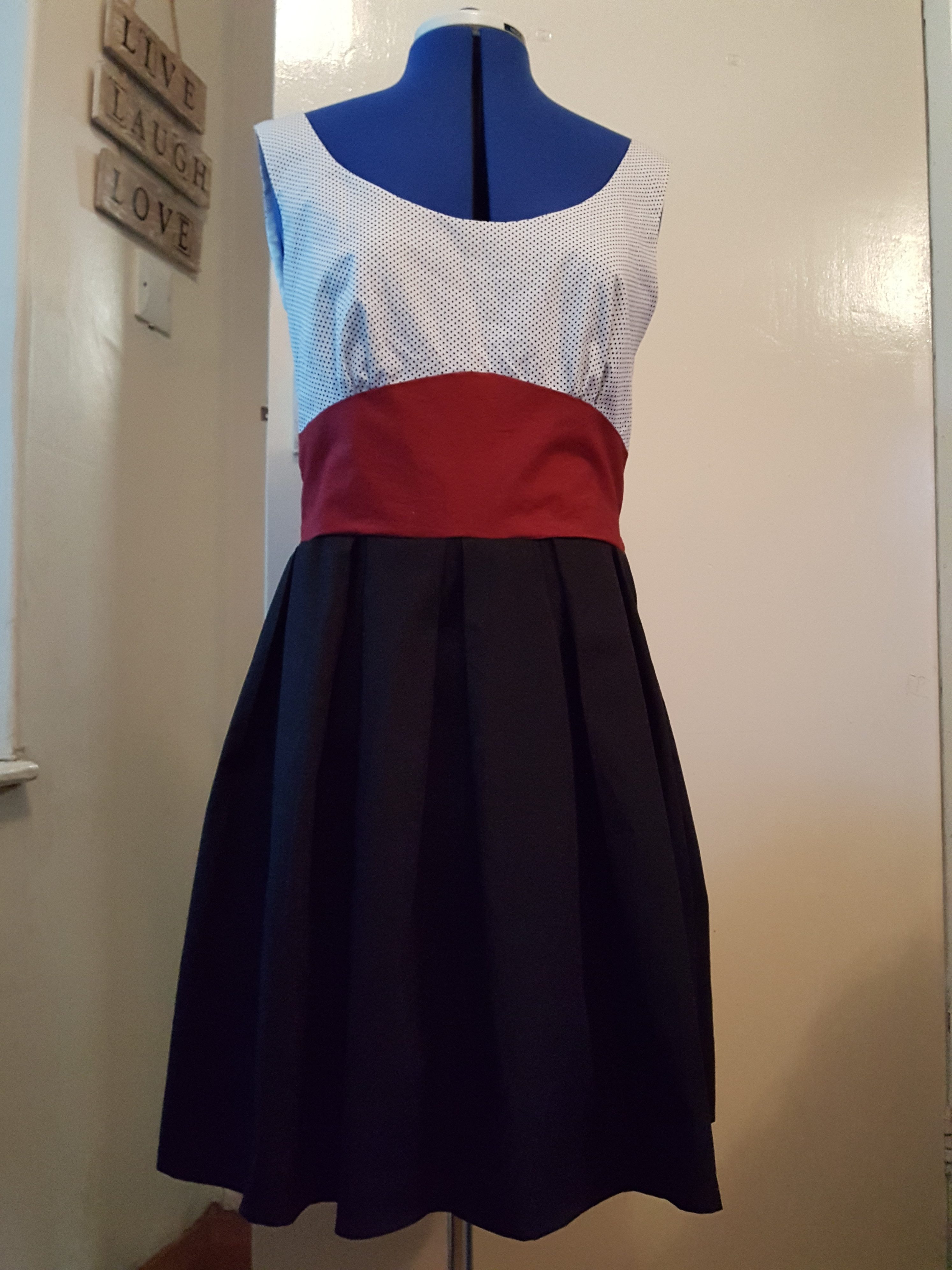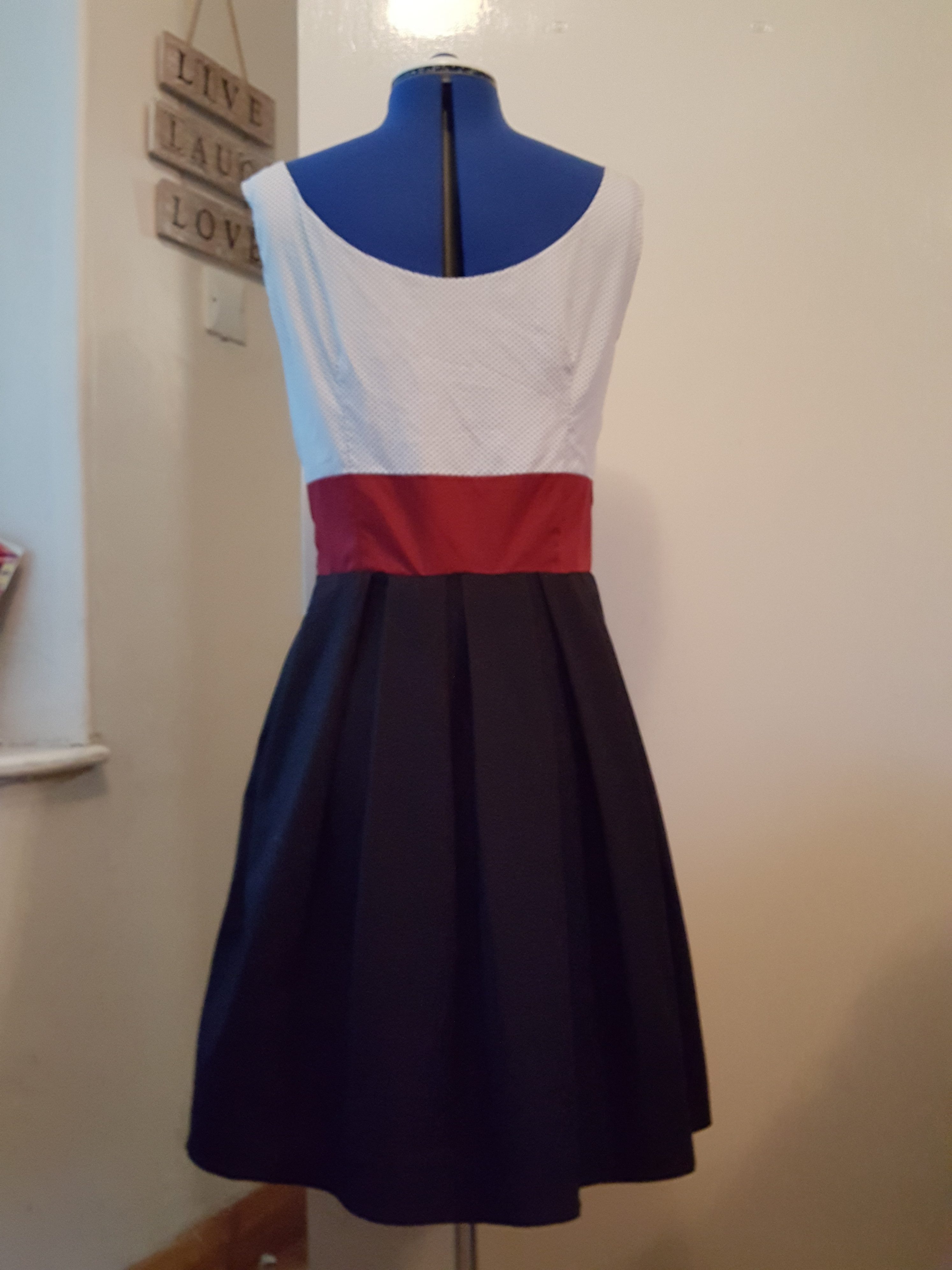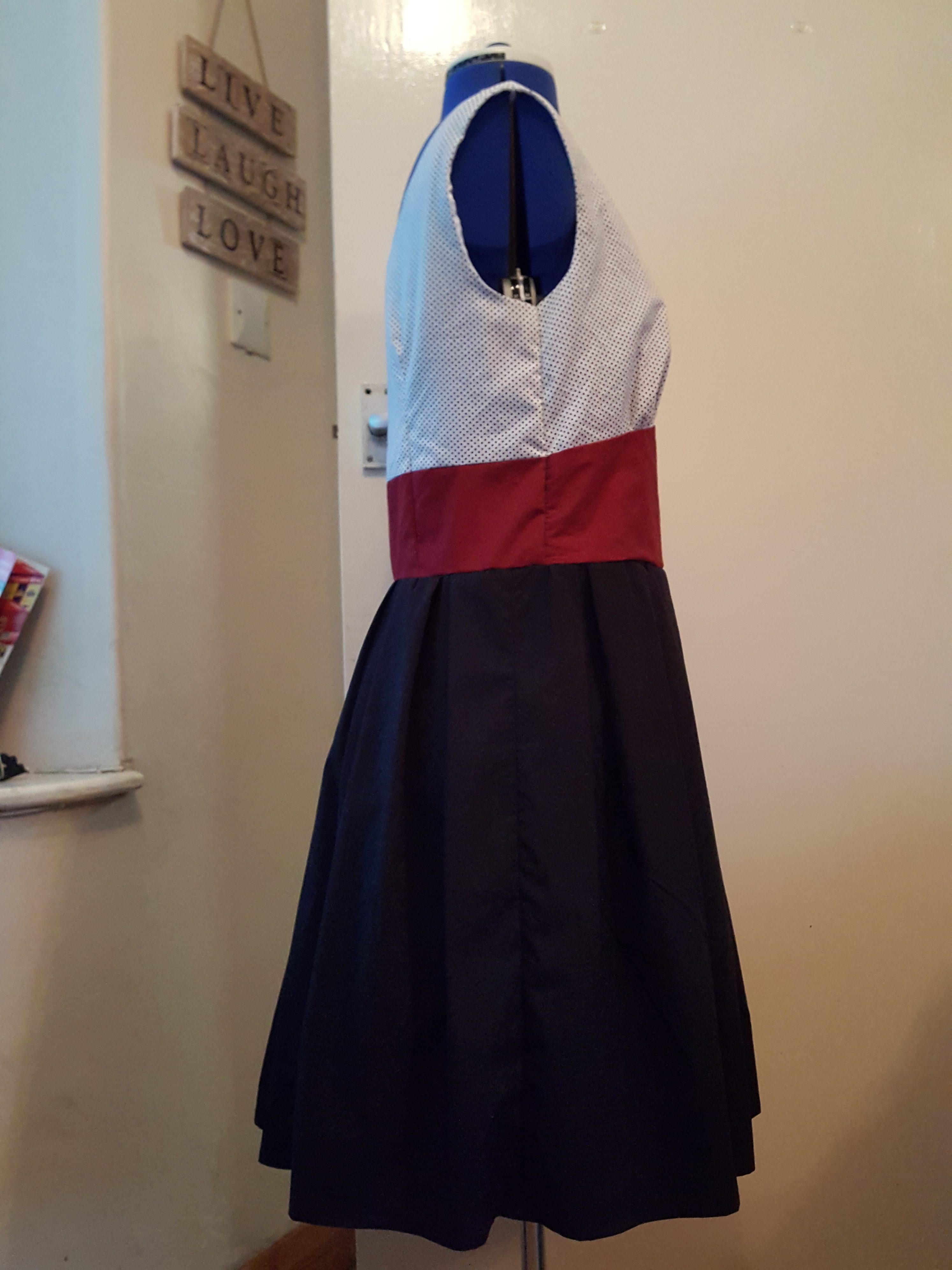 I’ve slightly altered the pattern so that the red band at the waist continued round to the back pretty chuffed hat it matched up so well! Also took off 6″ off the length of the Skirt on the Pattern before cutting into the Fabric. Dam my shortness!!!