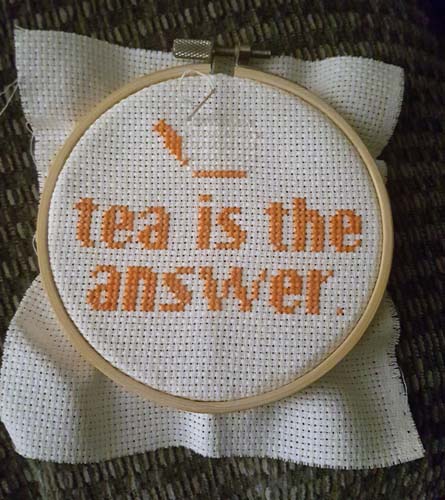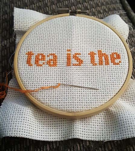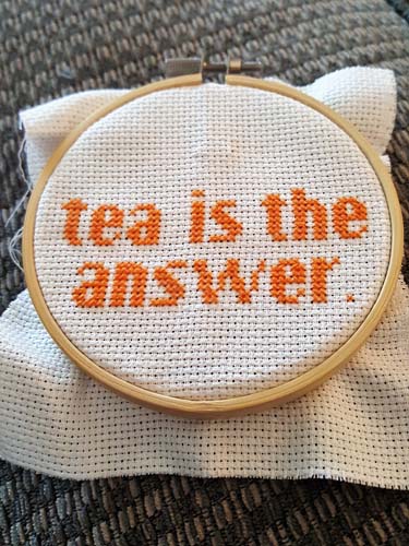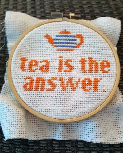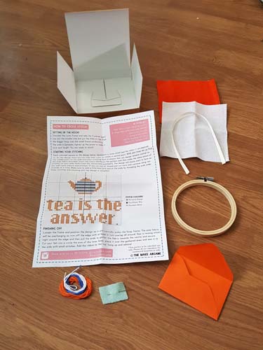 Now i don’t normally buy Kits as such as i quite like to choose my own fabrics, threads etc but when browsing the Shop I came across this ever so cute ‘Tea is the answer’ Cross Stitch Kit by The Make Arcade.