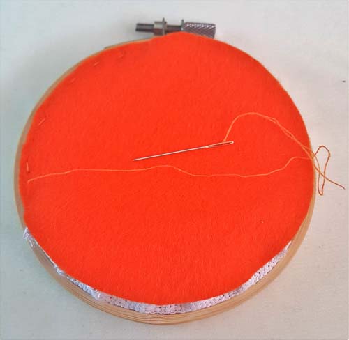 Now onto the fiddly bit of sewing the felt onto the back! You just need to make sure you catch both the felt and the Aida when sewing 🙂