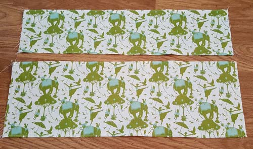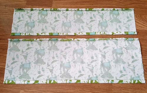 Cut one piece 18 x 45cm and another piece 13 x 45cm