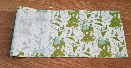 Then place the other half of the Fat Quarter Right Side Down on top of that, so it looks like a Sandwich!