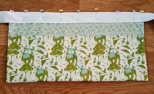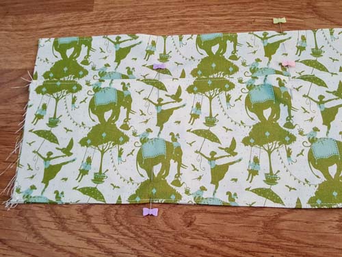 On the Long sides of each Pocket, turn over by 1cm to the Wrong Side and Press. Once you’ve done that for both Pockets then Top Stitch in place, I used 0.6cm/ 1/4′ Inch Seam Allowance π