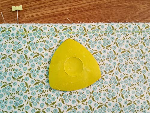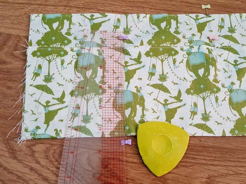 I did this by marking the middle of the Apron itself and then folding the side to the middle and then marking the fold point with a pin. For ease of a straight line i used Tailor’s chalk to mark my pocket, don’t know about you guys but even after nearly 3 years of sewing i still struggle to a precise straight line hahaha!