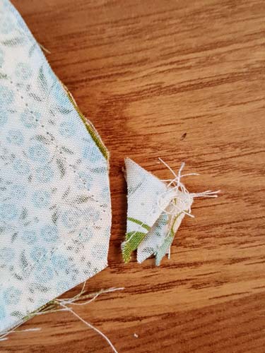 Clip the bottom edges near to the stitching line and then whilst turning the Apron Right Side out, find your most pointed tool available….mine was a wooden skewer (Yeah…. I like to improvise!) and gently poke the corner out.