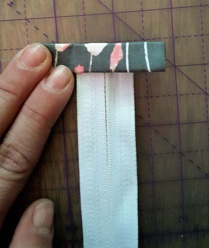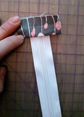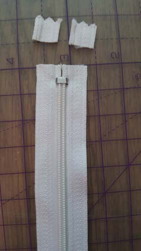 At the end of the zip, mark 1/4″ (0.6cm) away above where the zip ends and chop off the excess.
