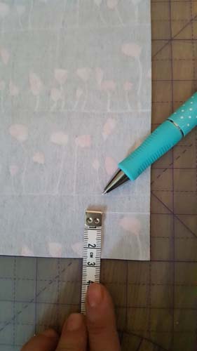 Right, let’s get Making! On the Outer Pieces, mark 1/4″from each edge on the Top of the Piece on the Right side of the Fabric. Trust me you will need this later!