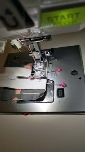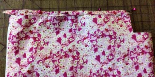 Pin the Side Seam from the top corner of the Square Cut out to the top of the Pouch using a 1/4″ (o.6cm) Seam Allowance and make sure don’t sew through the Zip Tab by accident.
