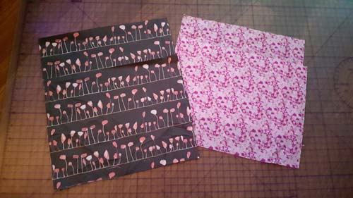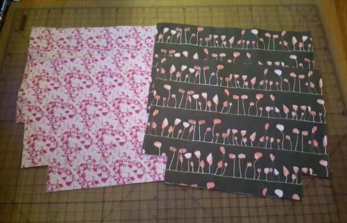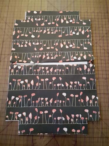 Cut out 1.5″(3.8cm) Square from the lower edge of each Outer Pieces. Repeat for the Lining Pieces also.