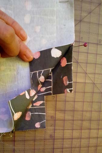 We are nearly there! Now to Finish the Bottom. Pinch the Bottom of the Pouch so that the Side Seam matches the Bottom Seam and the Corner Cut out is flat.