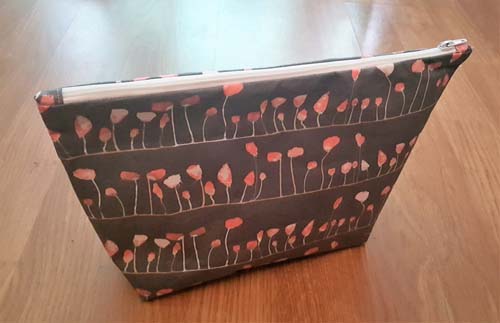 Press the Side Seam to one side and then pin and Sew using a 1/4″ (0.6cm) Seam Allowance. Then finish the Bottom Seam with the Bias Binding the same way as the Side Seam. Repeat for the other side. All we have to do now is is turn the pouch out to the Right Side, push the corners out gently with your fingers and here you go! One beautiful neat pouch! Beautiful both inside and out!